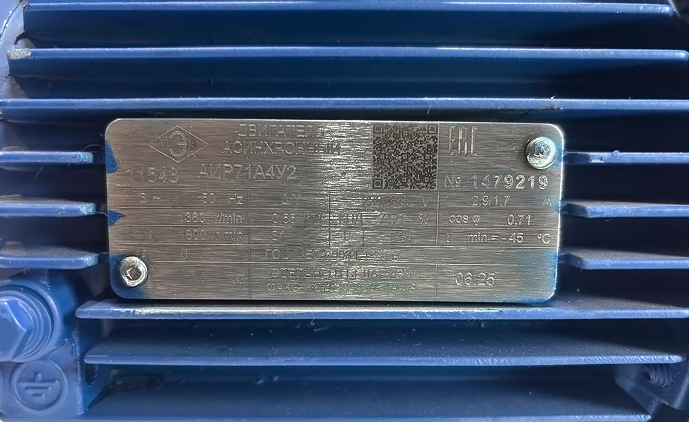 | Модель | АИР 71А4 0,55/1500 |