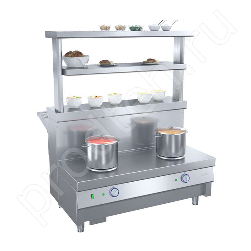 Мармит 1-х блюд двухконфорочный М1-2.1200-02-О без полок Ривьера Atesy предназначен для поддержания в горячем состоянии наплитной посуды с первыми блюдами.