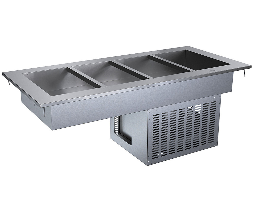 Охлаждение ванны осуществляется агрегатом Danfoss, расположенным в нижней части модуля. Охлаждение происходит в объёме специальной ниши столешницы с помощью испарителя закреплённого к днищу ванны. Температура в охлаждаемом объеме: от +2 до +10 град. С на высоте 60 мм от поверхности ванны.